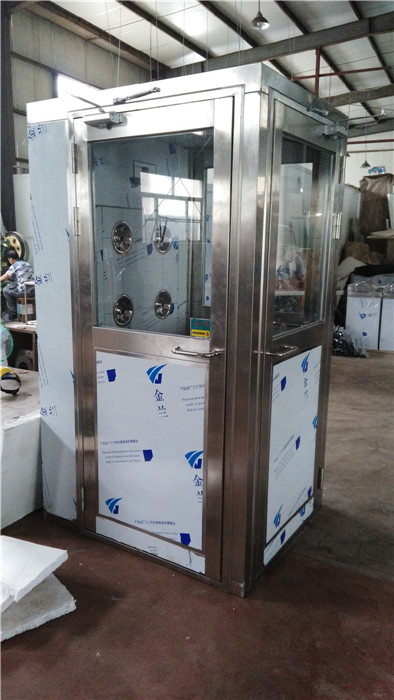 風(fēng)淋室(AIR SHOWER)又稱為風(fēng)淋、潔凈風(fēng)淋室、凈化風(fēng)淋室、風(fēng)淋房、吹淋房、風(fēng)淋門、浴塵室、吹淋室、風(fēng)淋通道、空氣吹淋室。風(fēng)淋室是潔凈室中必不可少的一中潔凈設(shè)備,工作人員進(jìn)入車間時(shí),必須通過(guò)此凈化設(shè)備,用超強(qiáng)勁已過(guò)濾潔凈的空氣,由可360度可調(diào)旋轉(zhuǎn)噴嘴從各個(gè)方向噴射至人或貨身上,從而有效而迅速清除去附著在衣服上和貨物表面的灰塵、頭發(fā)、發(fā)屑等雜物,它可以減少人進(jìn)出潔凈室所帶來(lái)的污染問(wèn)題。